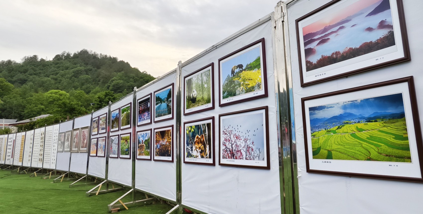 赛场旁的“建和美乡村·展青川风采”书画摄影作品展。