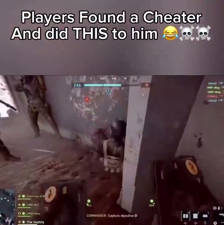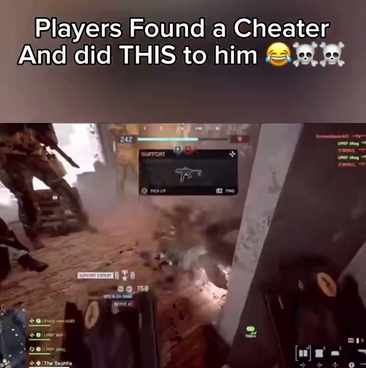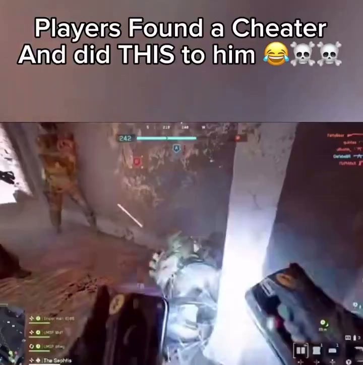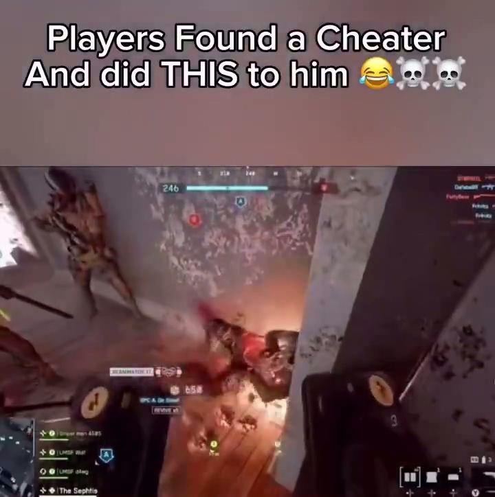 在国外社交媒体上分享的视频中,一名开挂玩家被自己的队友和敌人一起惩罚(维护公平游戏环境,人人有责),被射杀后紧接着被队友救起来,然后马上射杀,如此循环,直接导致这名玩家无法重生。