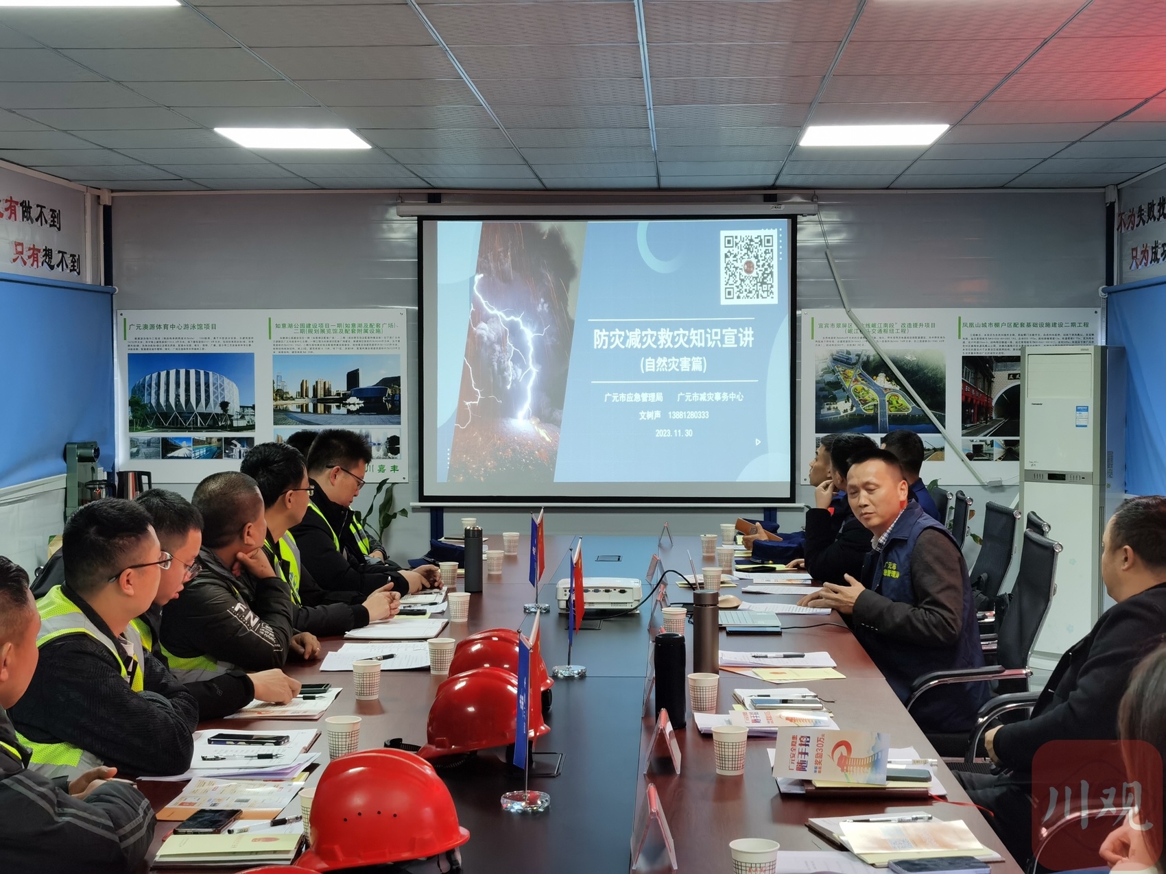 11月30日下午,广元市应急管理局和防灾减灾中心在广元市利州区金龙湖片区城乡一体化建设(配套道路一期)工程项目现场,开展工程生产安全、防灾减灾等相关知识培训,派发安全“大礼包”。项目主要负责人、班组长等60余人参加。进一步巩固企业安全生产意识,增强企业安全事故的防控和自然灾害应对能力。